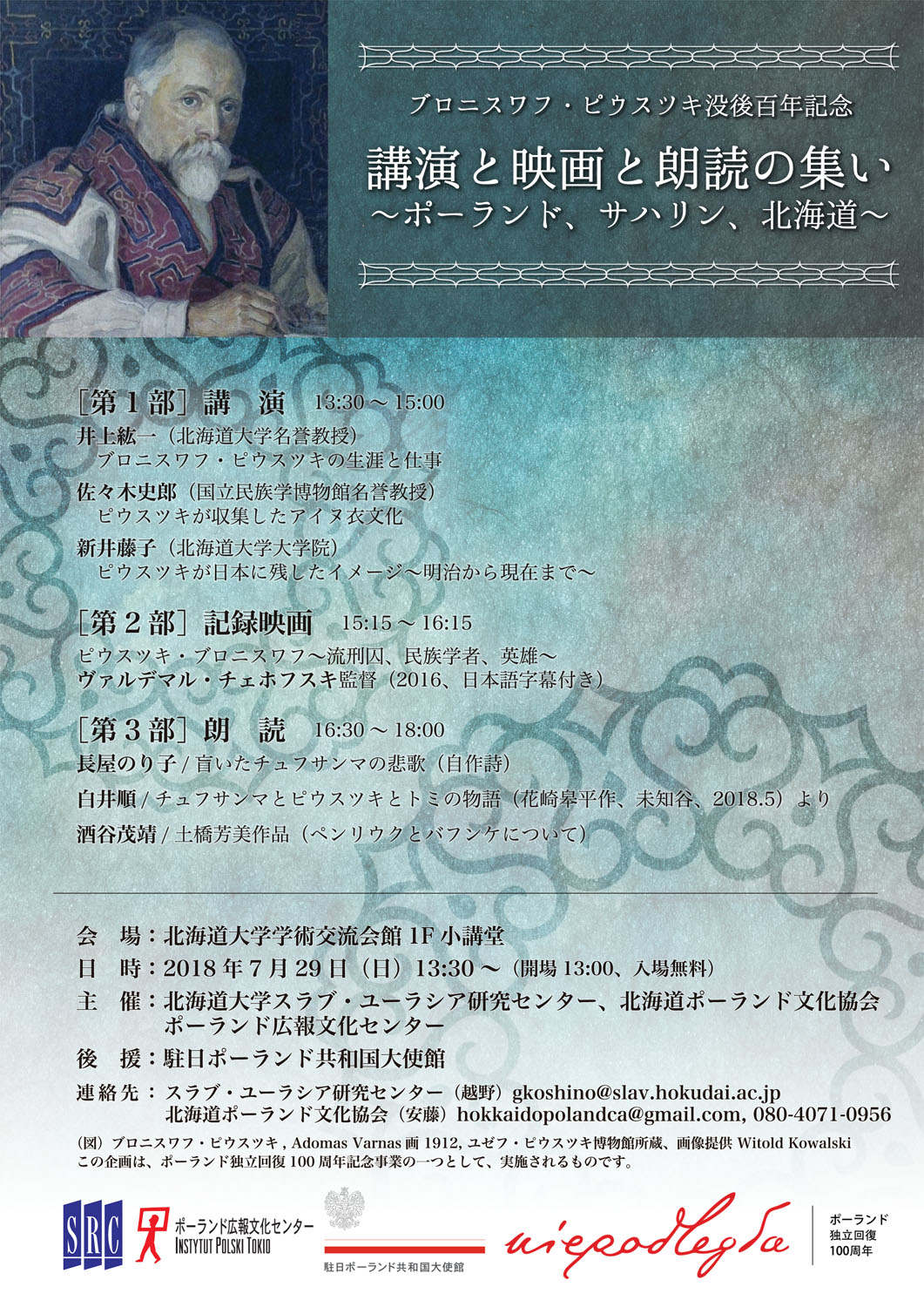 共催: 北海道大学スラブ・ユーラシア研究センター, ポーランド広報文化センター, 後援: 駐日ポーランド共和国大使館