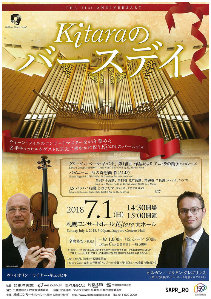 〈後援〉♫Kitaraのバースデイ: オルガン/マルタン・グレゴリウス, ヴァイオリン/ライナー・キュッヒル, Kitara 7.1