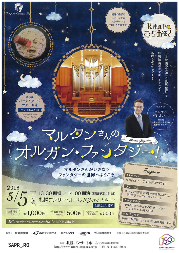 ♫〈Kitaraあ・ら・かると〉マルタンさんのオルガン・ファンタジー! 〜無声映画と即興演奏のコラボレーション『月世界旅行』A Trip to the Moon (1902) by Georges Melies, バックステージツアー, Kitara大ホール 2018.5.5, blog #1 #2