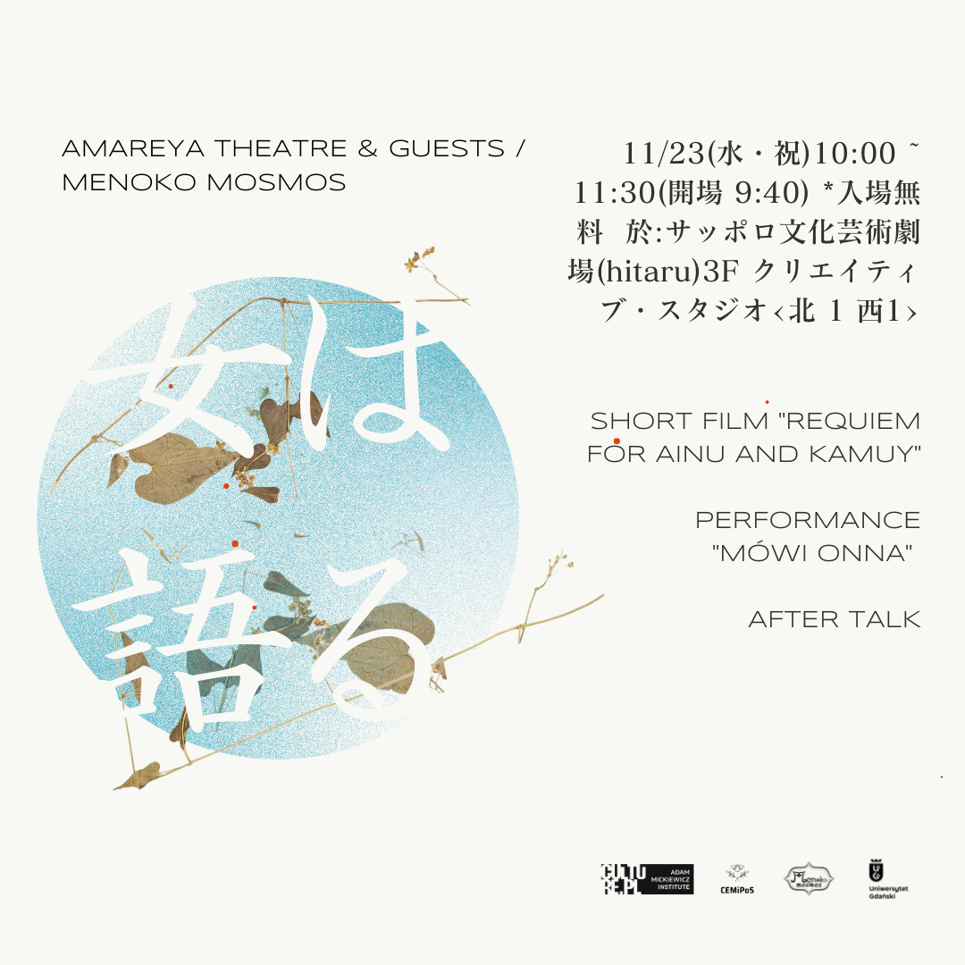 《第102回例会》♪新作パフォーマンス「女は語る Mówi ONNA」byアマレヤ&メノコモシモシ ♪動画「アイヌとカムイのためのレクイエム」Requiem dla Ajnu i Kamui 2021, 札幌文化芸術劇場クリエイティブスタジオ 2022.11.23