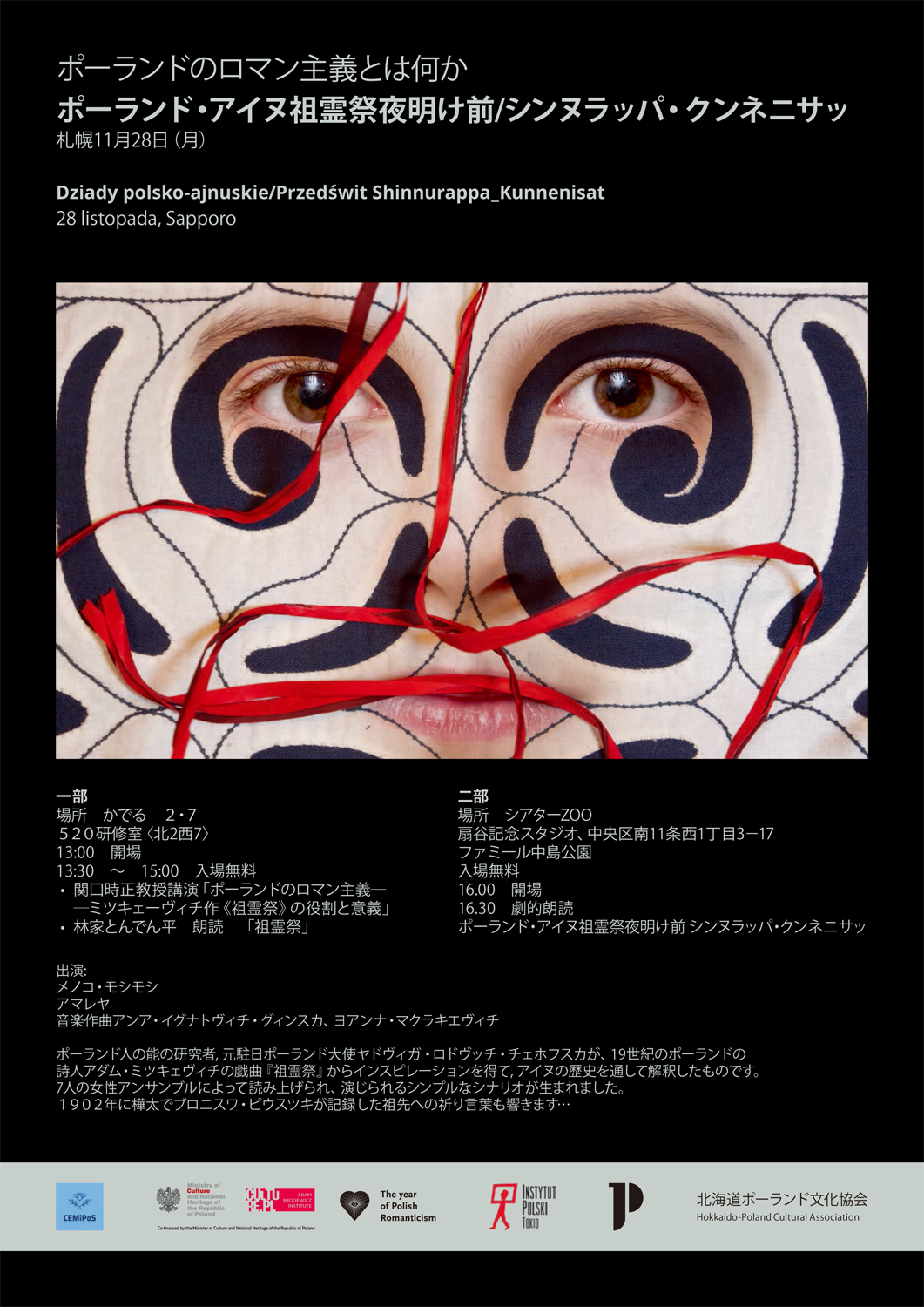 A16:30〜 シアターZOO ♪劇的朗読「ポーランド・アイヌ『祖霊祭』夜明け前/シンヌラッパ・クンネニサッ Dziady polsko-ajnuskie/Przedświt - sinnurappa-kunne nisat」作/芸術監督: J.ロドヴィッチ, 出演:アイヌ女性会議メノコモシモシ #1 #2 &アマレヤ劇団