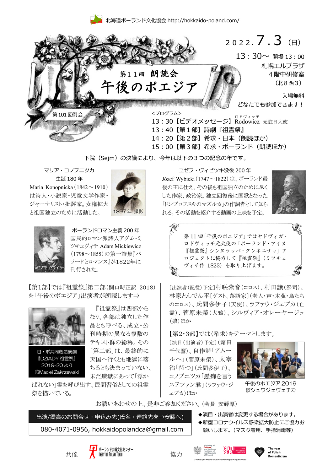 《第103回例会》ポーランドのロマン主義とは何か〜ポーランド・アイヌ『祖霊祭』夜明け前/シンヌラッパ・ケンネニサッ, 2022.11.28 @13:20〜 かでる2・7 ◇お話「ポーランド・アイヌ『祖霊祭』について」ヤドヴィガ・ロドヴィッチ=チェホフスカ ◇講演「ポーランドのロマン主義〜ミツキェーヴィチ作『祖霊祭』の役割と意義」関口時正 ◇朗読『祖霊祭』第2部より:林家とんでん平 #1 #2