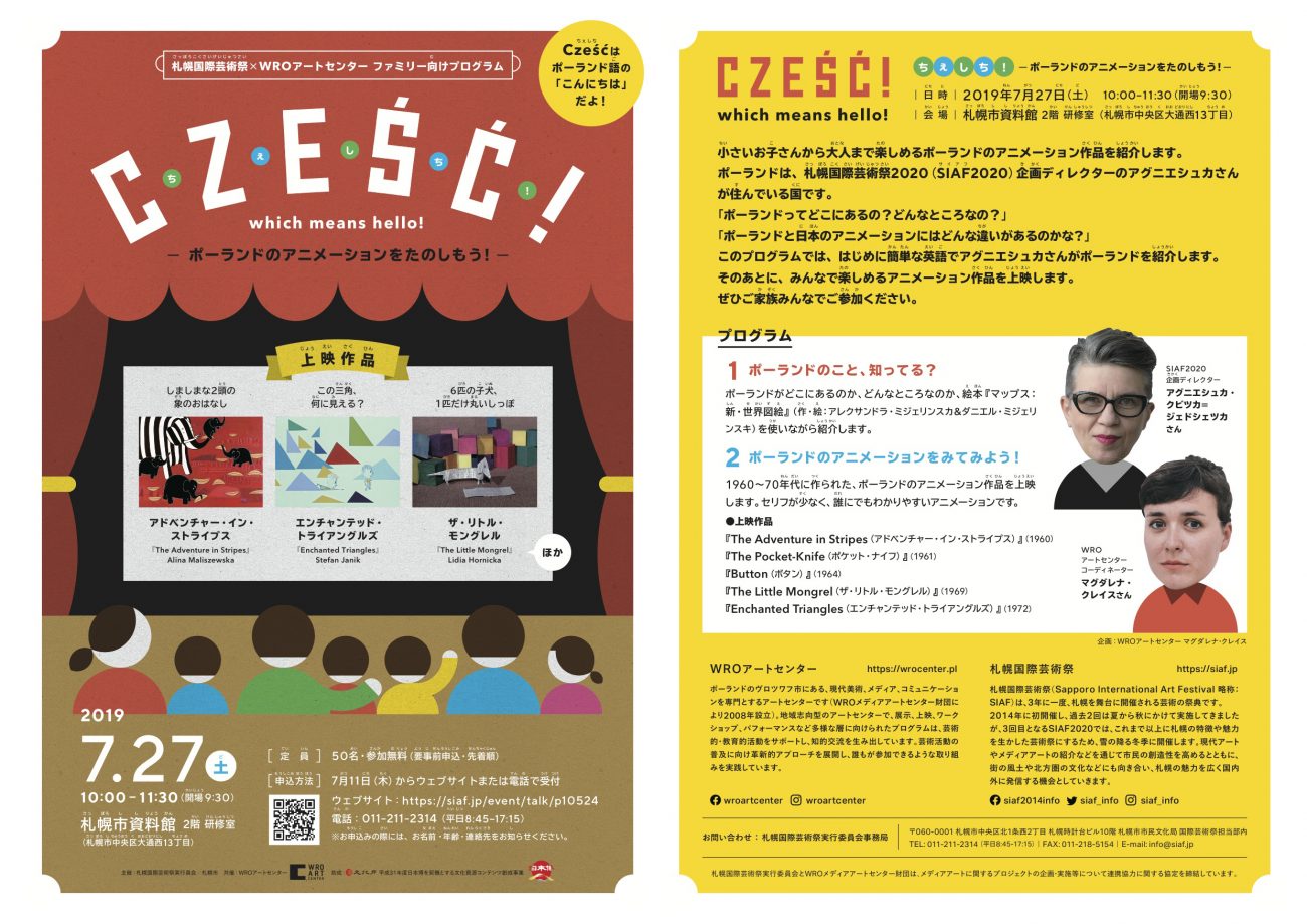 〈札幌国際芸術祭〉SIAF2020×WROアートセンターファミリー向けプログラム「Cześć!ちぇしち=こんにちは: ポーランドのアニメーションをたのしもう!」札幌市資料館 2019.7.27, アグニエシュカ・クビツカ=ジェドシェツカ;マグダレナ・クレイス