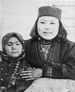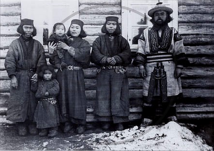 =写真=妻チュフサンマ 左A1902-05 =ピウスツキ撮影= B助造を抱くチュフサンマとその親族 1904-05 =同= C1931 =北里闌= D1934 =ヤンタ=ポウチンスキ=