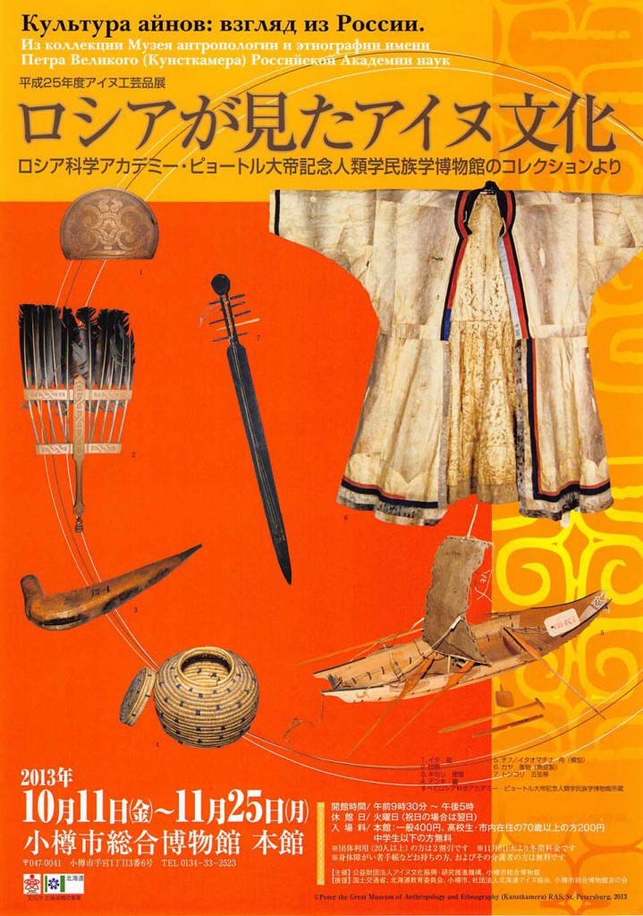 ・ロシアが見たアイヌ文化〜ロシア科学アカデミー・ピョートル大帝記念人類学民族学博物館 (クンストカメラ) のコレクションより, 小樽市総合博物館 2013.10.11-11.25; 九州国立博物館 12.10-2014.2.16