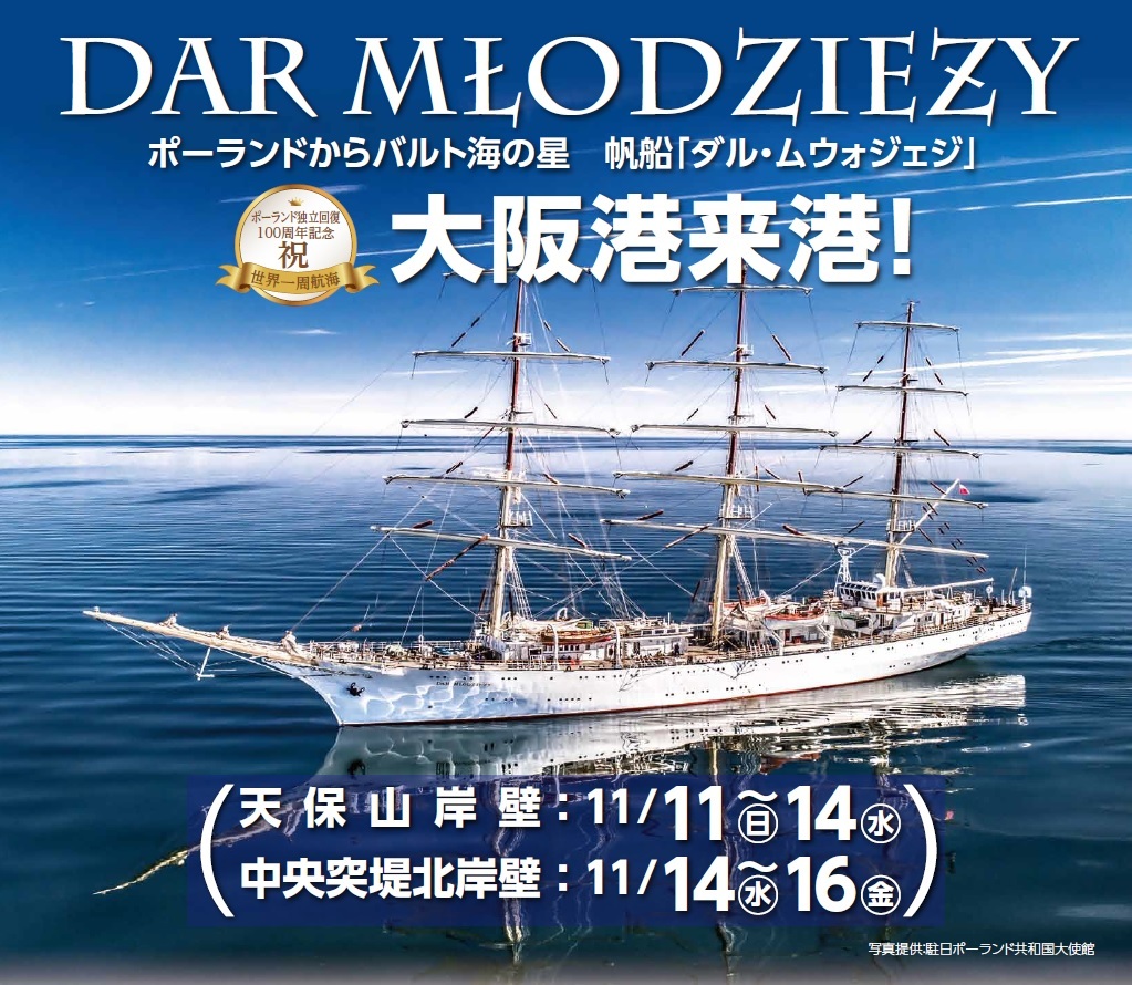 ・グディニャ Gdynia 発 2018.5.20-2019.3.28 独立回復百周年記念世界一周航海のポーランド帆船ダル・ムウォジェジ Dar Młodzieży 号大阪寄港 2018.11.11-16 12/5 11/11 10/26, 産経新聞, Wyborcza Trójmiasto, Radio Maryja, 香港, 2010, Sail Osaka '97 #1